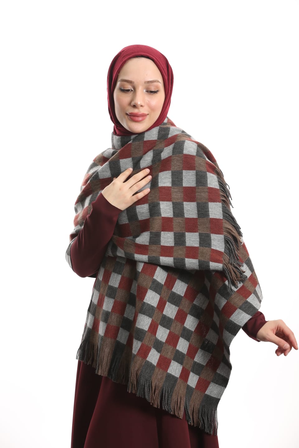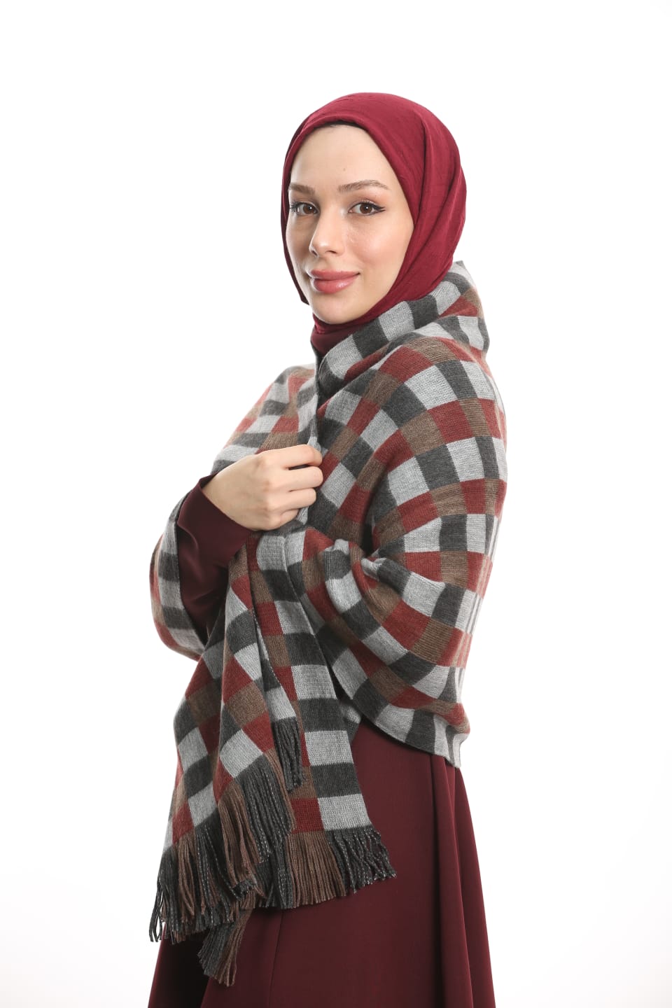 Beyaz ve kırmızı tonlarının uyumuyla tasarlanan desenli triko şal, kış aylarında hem şıklık hem de sıcaklık sunar. Yumuşak triko dokusu sayesinde gün boyu rahatlık sağlar, baklava deseni ise modern ve zarif bir görünüm kazandırır.