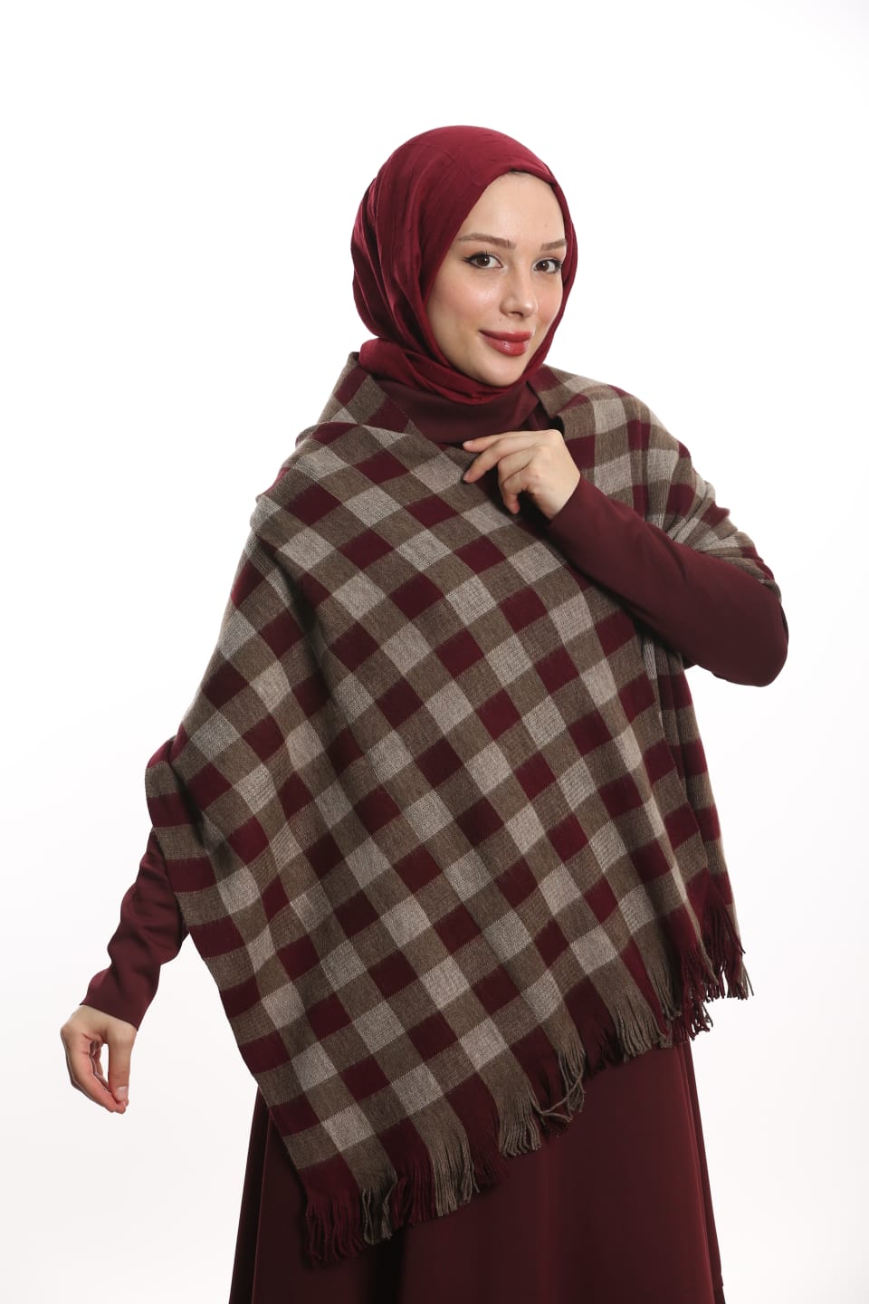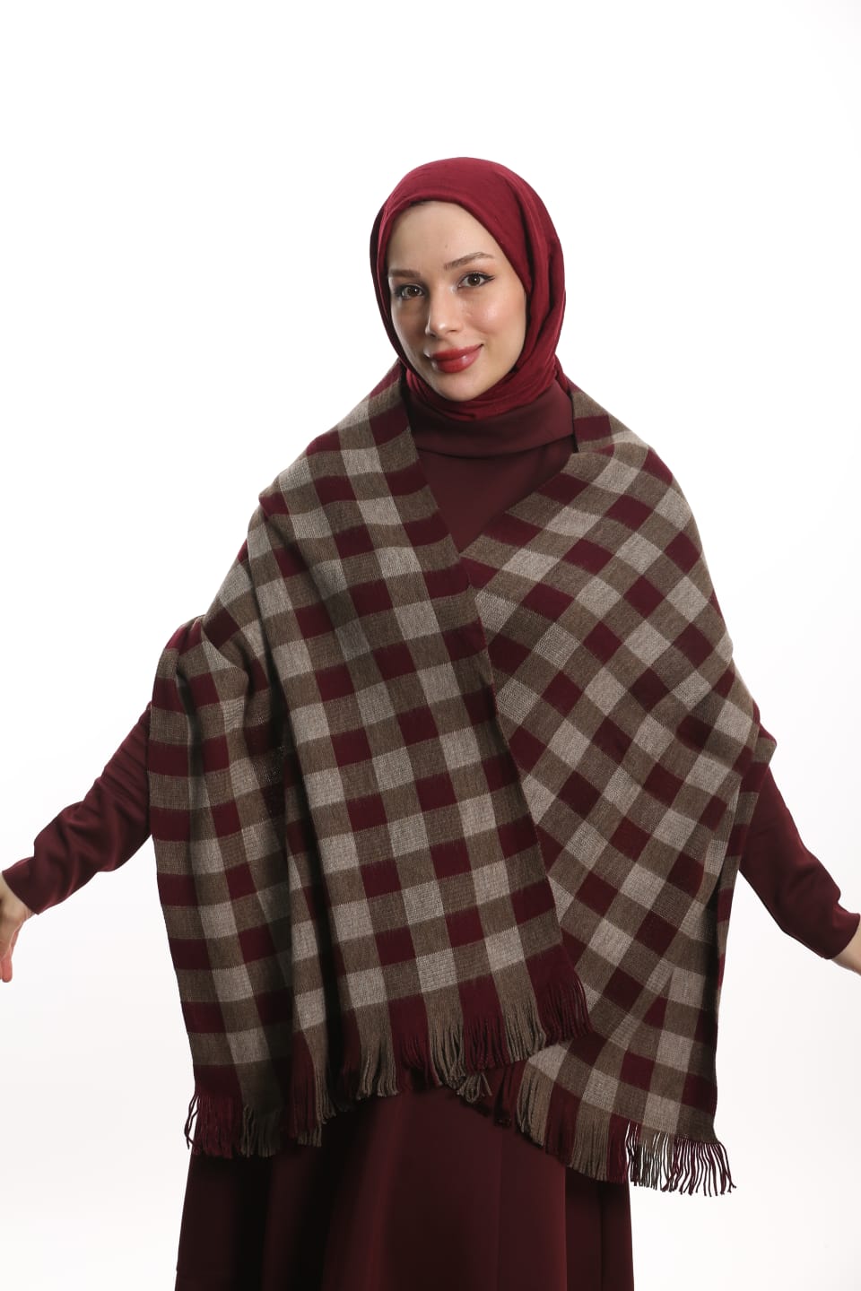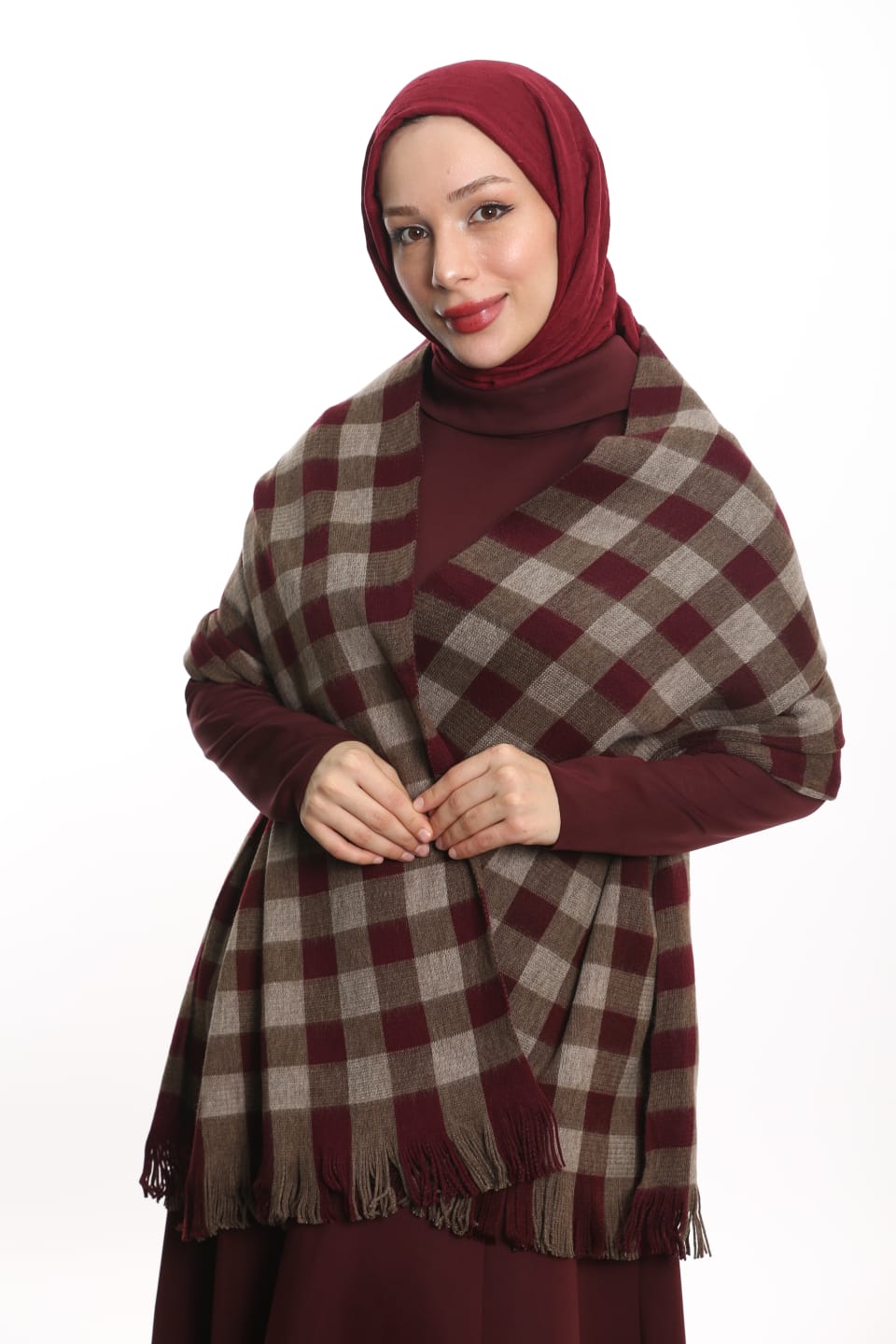 Baklava Desen Triko Şal - Kırmızı Kahve Tonları