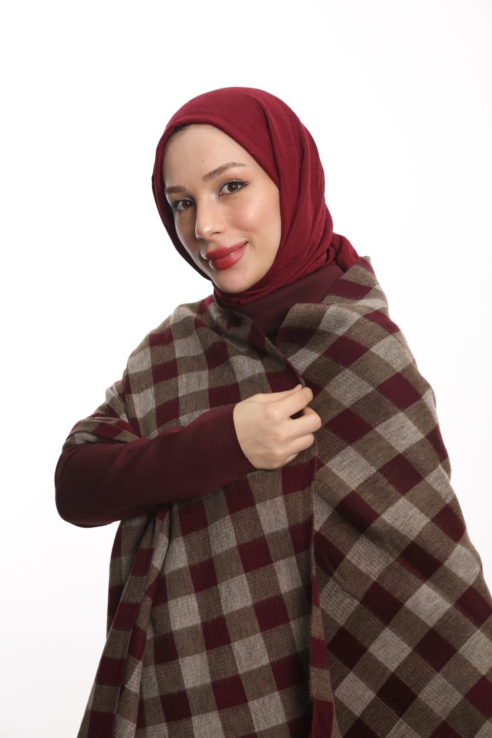 Kırmızı ve kahve tonlarının uyumuyla tasarlanan desenli triko şal, kış aylarında hem şıklık hem de sıcaklık sunar. Yumuşak triko dokusu sayesinde gün boyu rahatlık sağlar, baklava deseni ise modern ve zarif bir görünüm kazandırır.