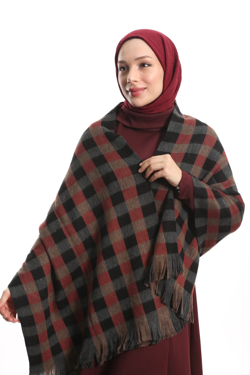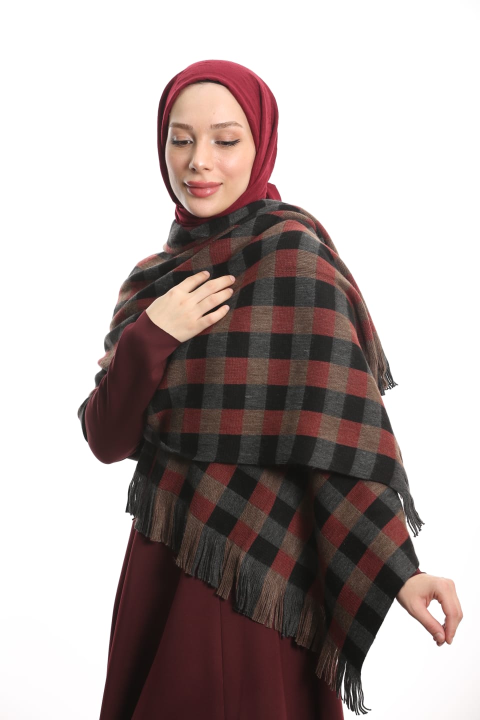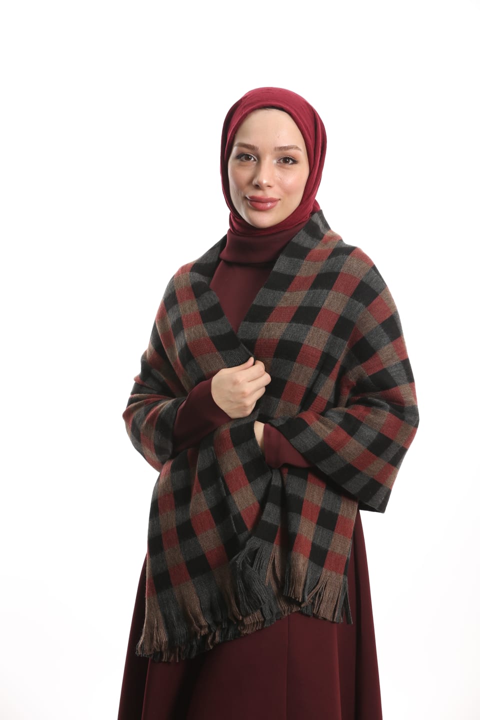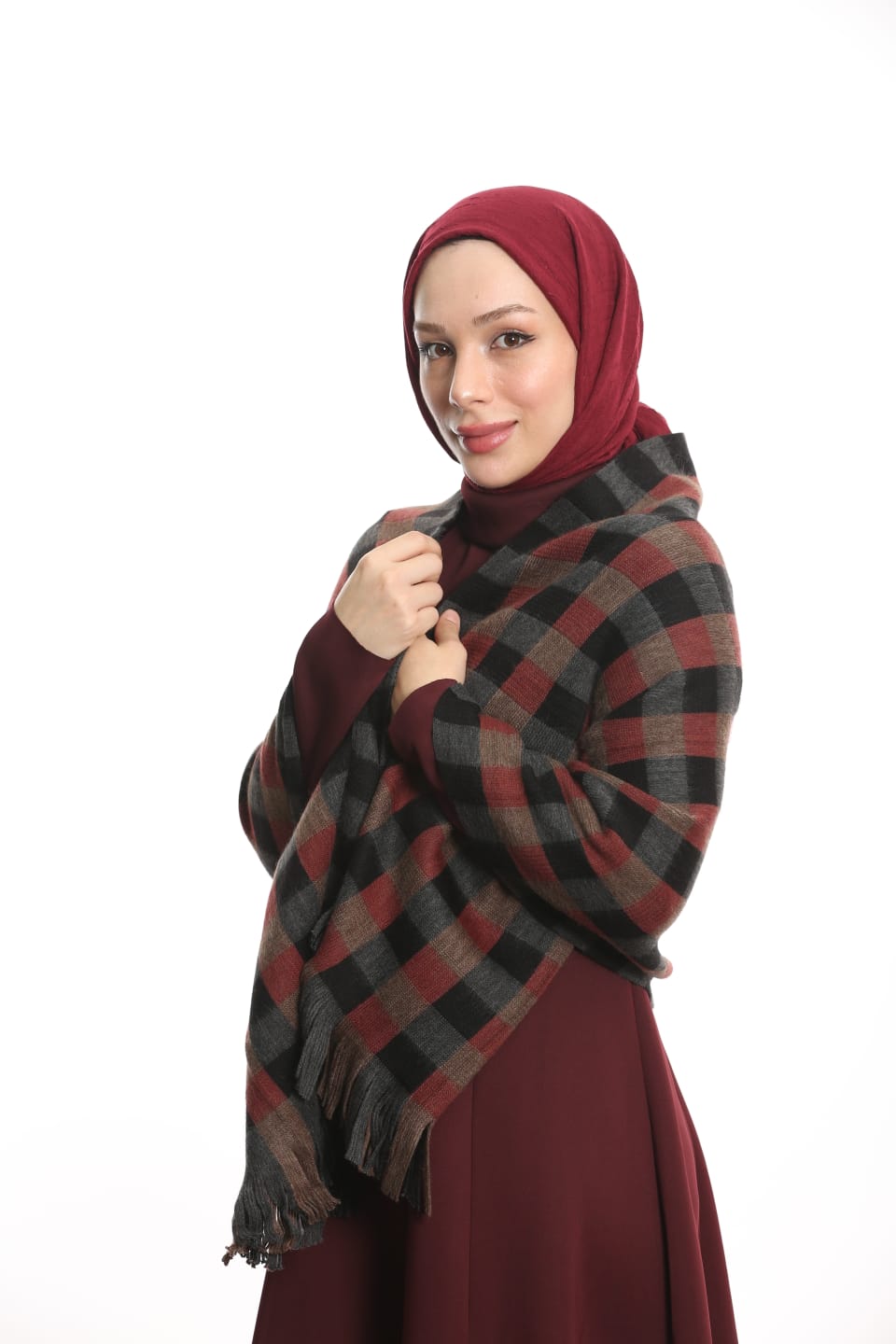 Siyah ve kırmızı tonlarının uyumuyla tasarlanan desenli triko şal, kış aylarında hem şıklık hem de sıcaklık sunar. Yumuşak triko dokusu sayesinde gün boyu rahatlık sağlar, baklava deseni ise modern ve zarif bir görünüm kazandırır.